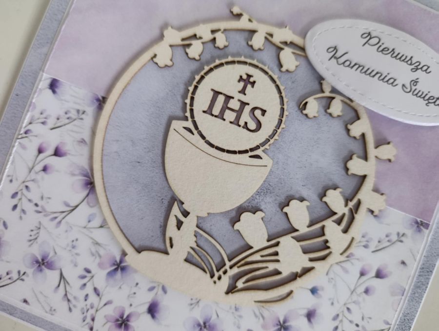 Zadaj pytanie dotyczące produktu: Kartka Pierwsza Komunia Święta liliowa