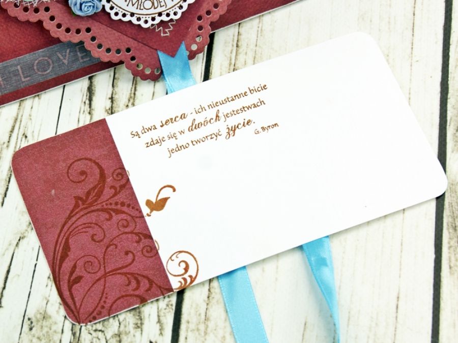 Zadaj pytanie dotyczące produktu: Kartka ślubna- Turkusowe bordo