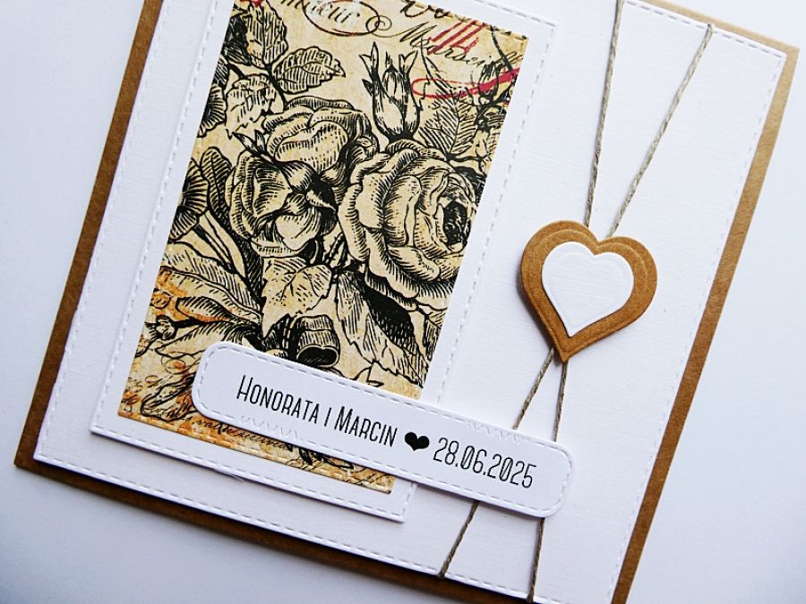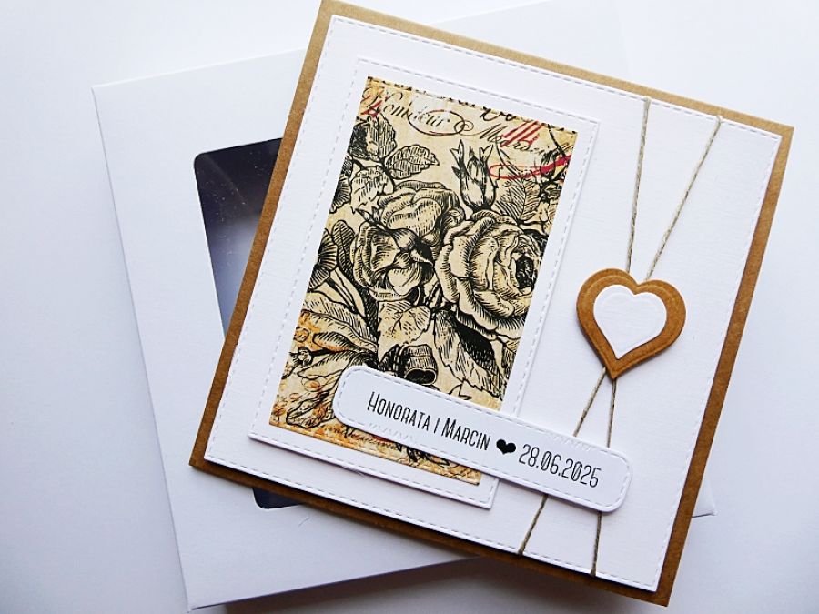 Zadaj pytanie dotyczące produktu: Kartka ślubna boho na ślub z różami vintage