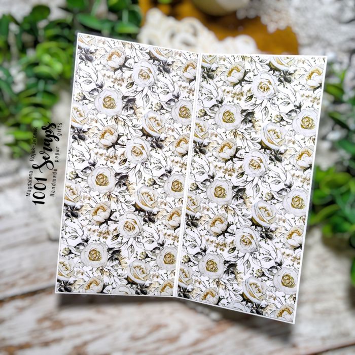 Możliwość personalizacji: tak, istnieje możliwość dodania własnych życzeń, które zostaną wydrukowane i wklejone do kartki (na życzenie klienta można pozostawić w kartce wklejony biały karnet do wypisania życzeń ręcznie) oraz imion i daty ślubu również umieszczonych wewnątrz kartki.
