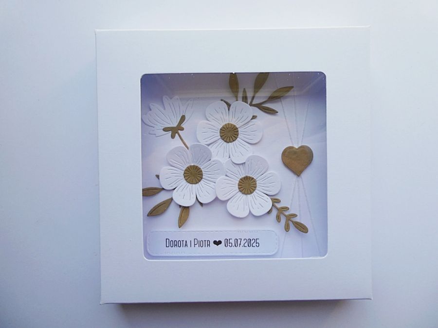 Kartka sprzedawana jest w komplecie z eleganckim pudełkiem z szybką.