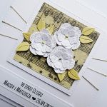 Ta biało-beżowa kartka ślubna to piękne połączenie ślubnej delikatności z muzyczną pasją.