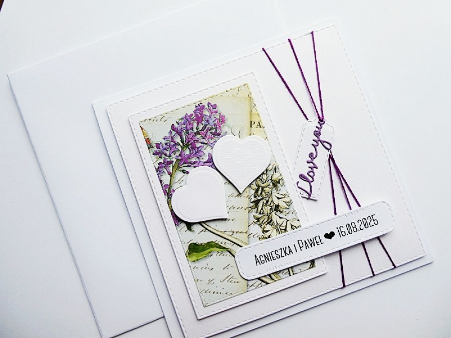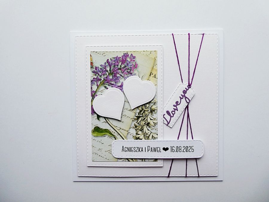 Zadaj pytanie dotyczące produktu: Kartka ślubna retro z dwoma sercami handmade