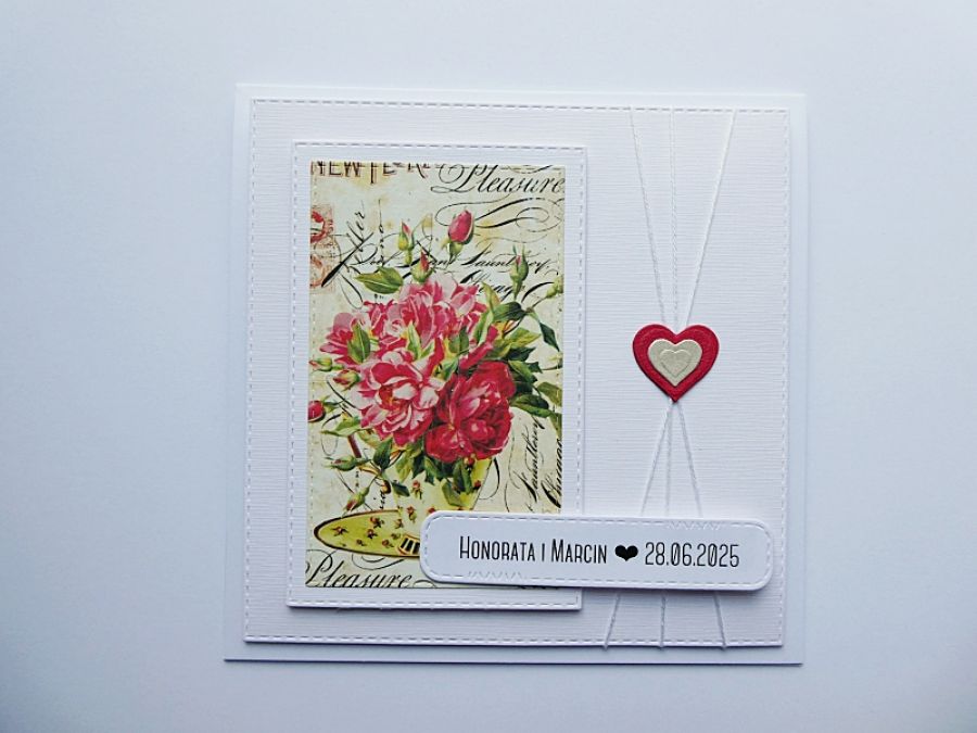 Nazwa produktu: Kartka ślubna romantyczna z bukietem róż
