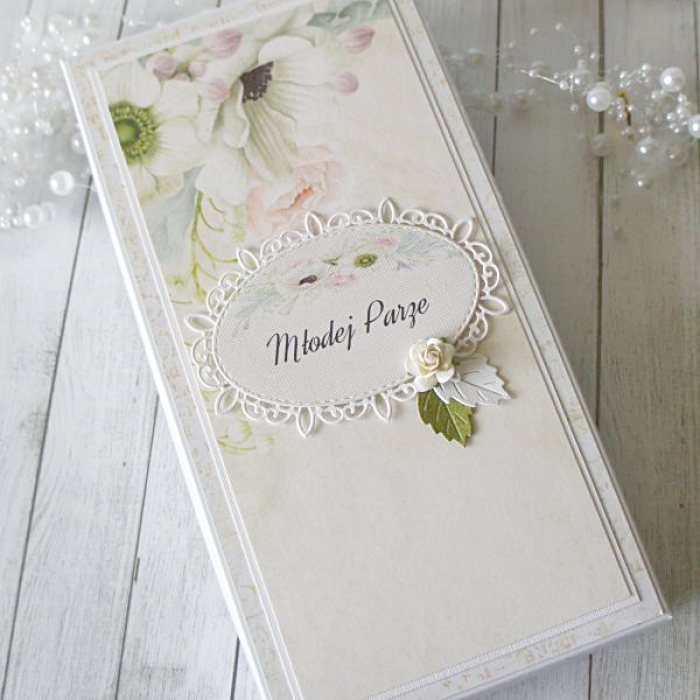Wykonana z wykorzystaniem profesjonalnych materiałów, ozdobiona papierami z motywem kwiatów.