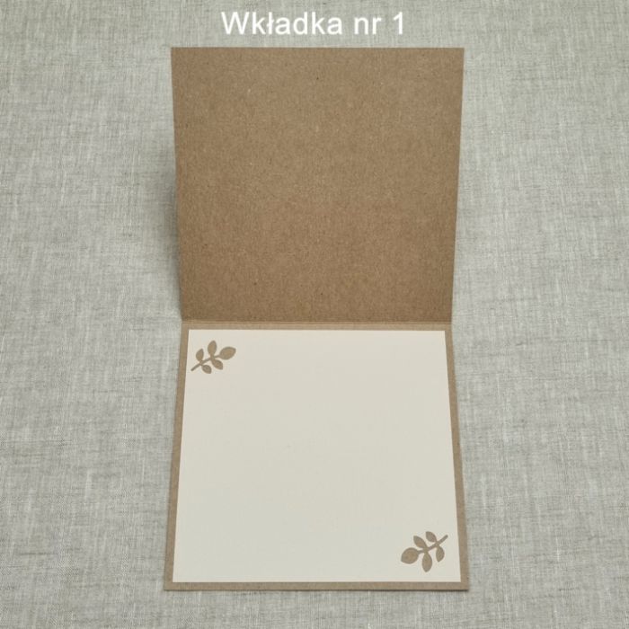 Przy wyborze kartki z personalizacją, życzenia będą wydrukowane w kolorze brązowym, który ładnie komponuje się z jasno-beżowym kolorem wkładki oraz kolorem "kraftowym" kartki.