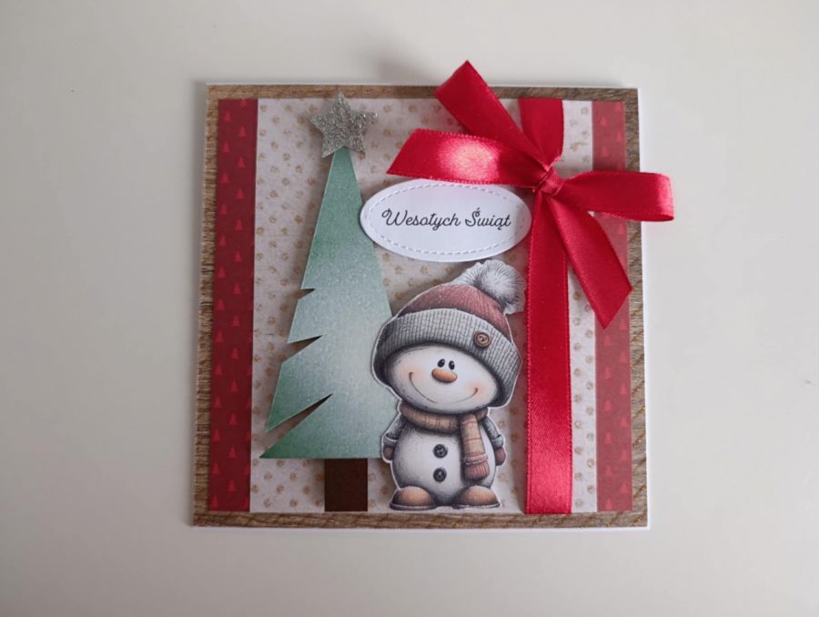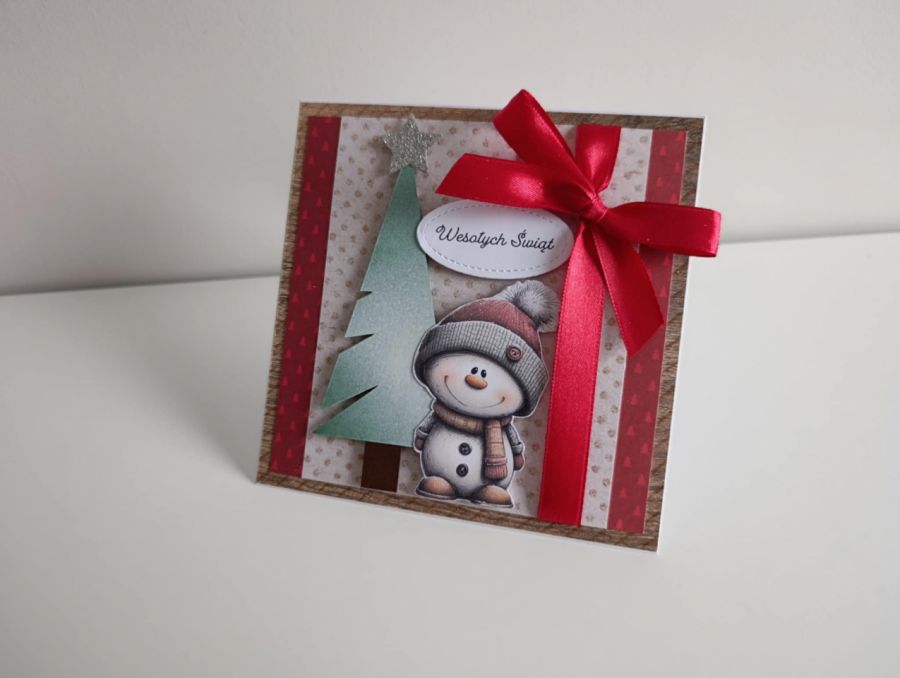 Zadaj pytanie dotyczące produktu: Kartka Świąteczna Boże Narodzenie bałwanek z choinką