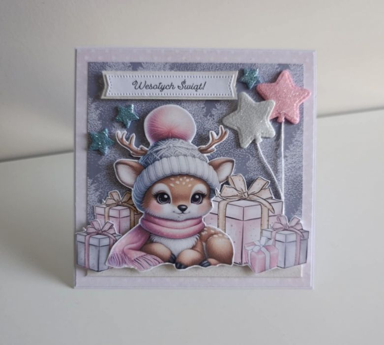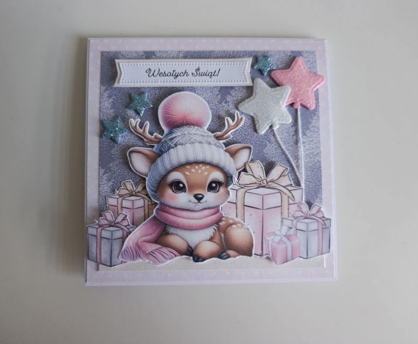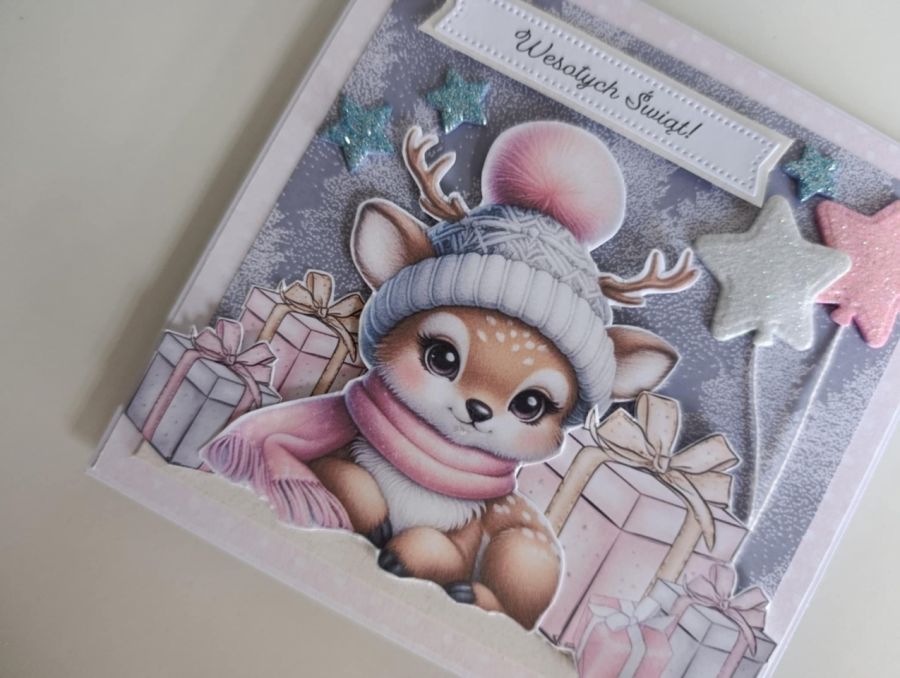 Zadaj pytanie dotyczące produktu: Kartka świąteczna Boże Narodzenie renifer z prezentami