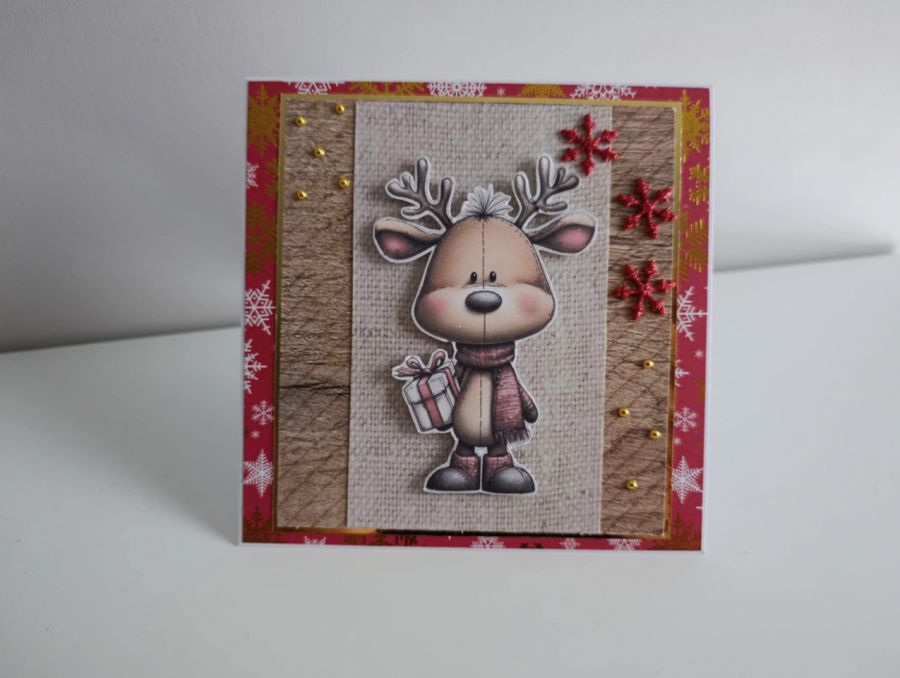 Zadaj pytanie dotyczące produktu: Kartka świąteczna Boże Narodzenie renifer z prezentem