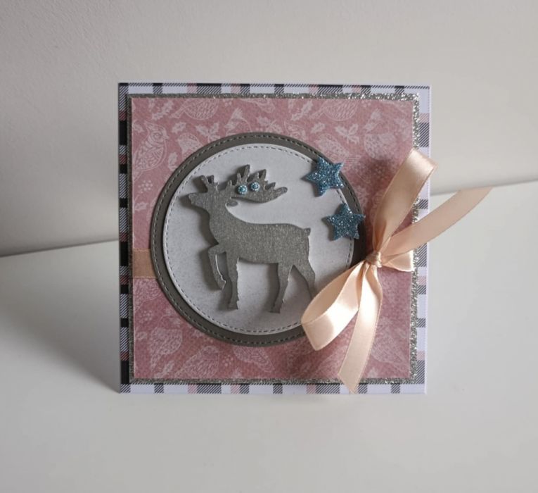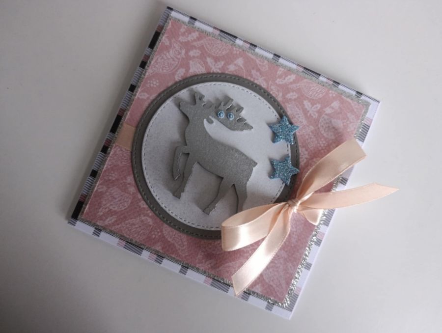 Zadaj pytanie dotyczące produktu: Kartka świąteczna Boże Narodzenie srebrny renifer