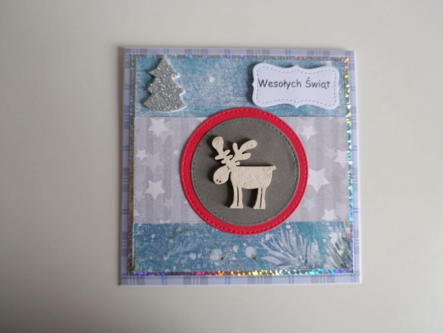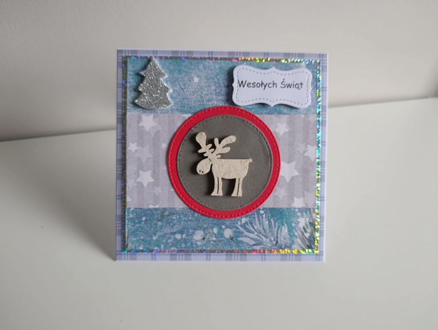 Zadaj pytanie dotyczące produktu: Kartka świąteczna renifer szaro-niebieska