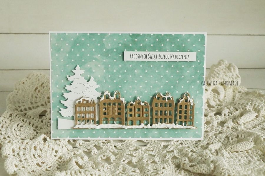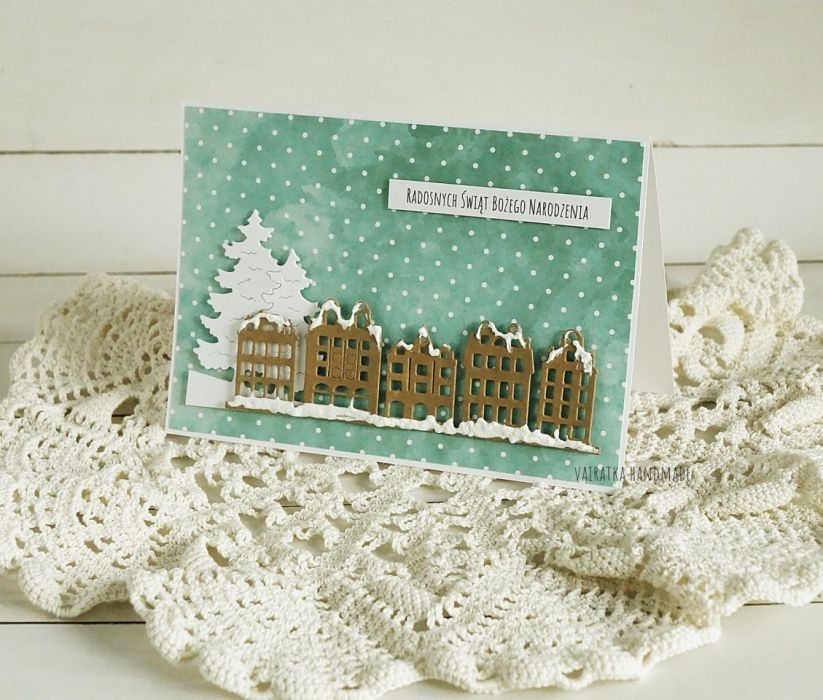 Zadaj pytanie dotyczące produktu: Kartka świąteczna z ośnieżonymi domkami, 337