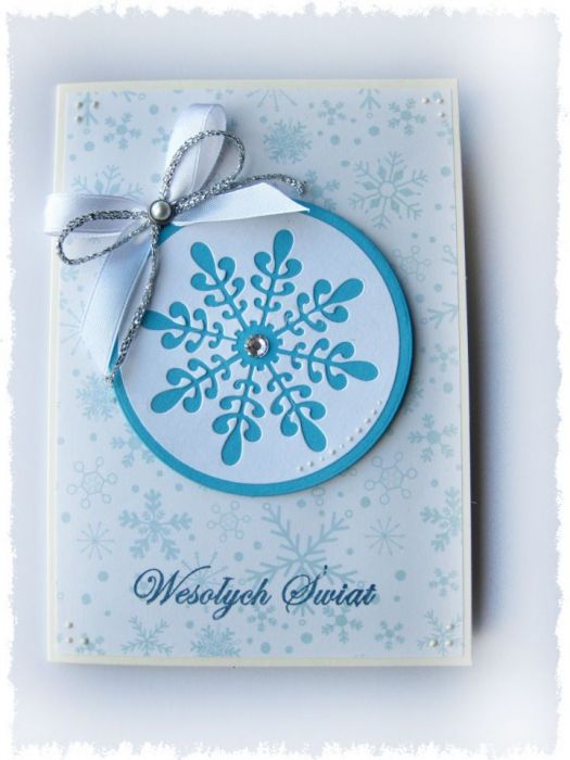 Nazwa produktu: Kartka świąteczna ze śnieżynkową bombką