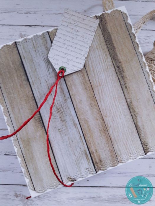 Do kartki dołączam GRATIS w postaci widocznej na zdjęciu etykietki, za pomocą której można podpisać prezent dla osoby obdarowywanej świąteczno-urodzinowym upominkiem i przyczepić ją do wstążki, którą obwiązany jest podarunek, za pomocą sznureczka, który również znajduje się w zestawie.