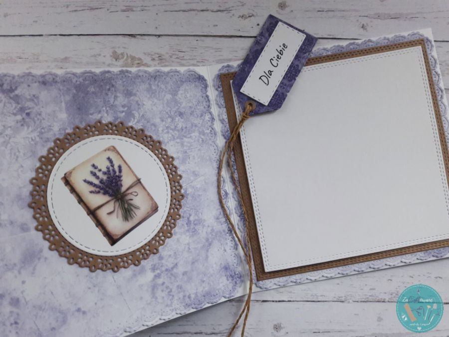 Ręcznie robiona kartka urodzinowa z bukietem lawendy wykonana metodą scrapbookingu z wykorzystaniem profesjonalnych materiałów i z dbałością o każdy szczegół.