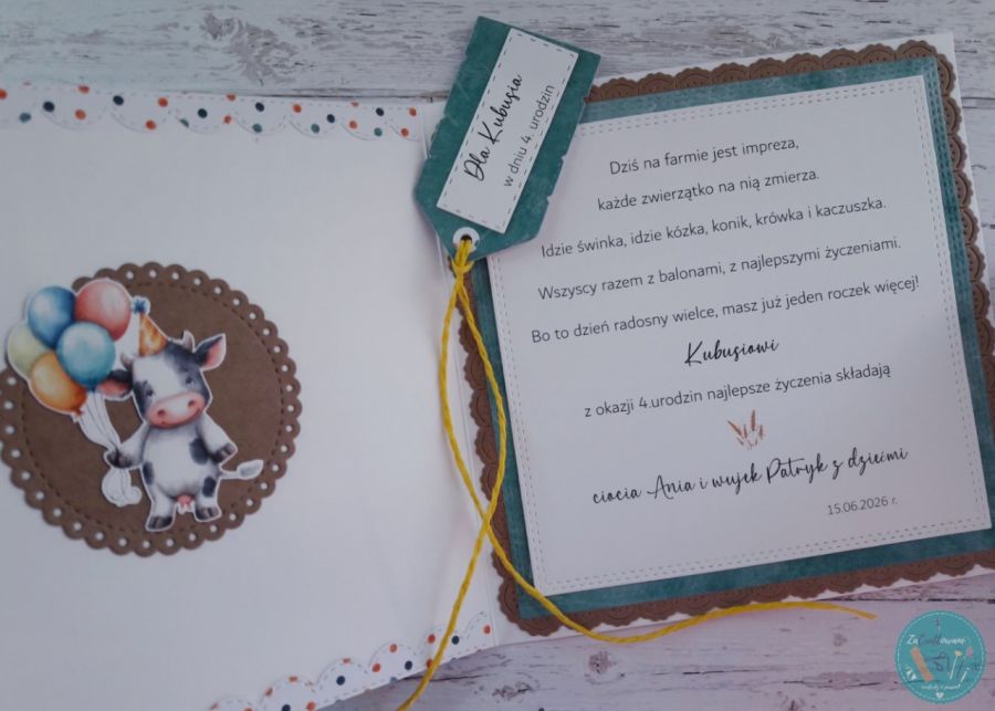 - dowolnego napisu z przodu np. „[Kubusiu], w dniu Twoich 4. urodzin”