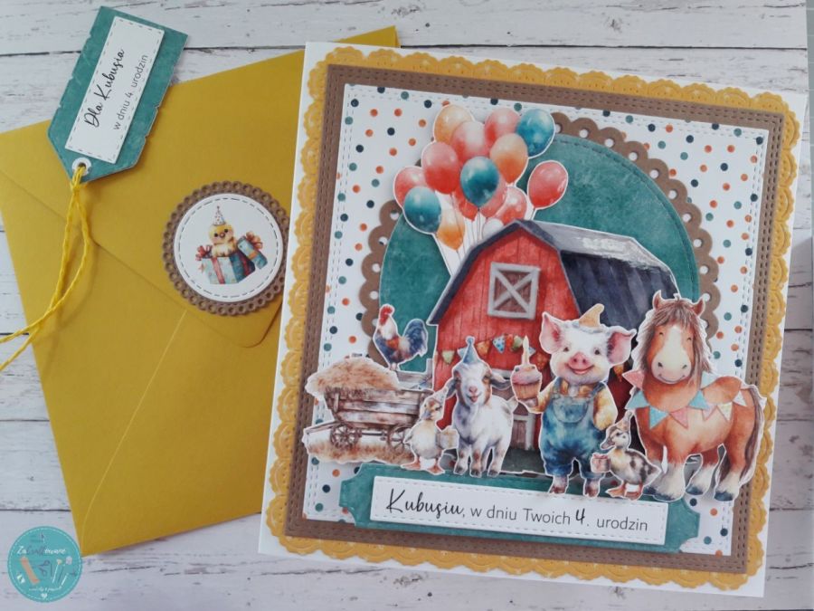 Nazwa produktu: Kartka urodzinowa dla dziecka „Urodziny na farmie”, personalizacja