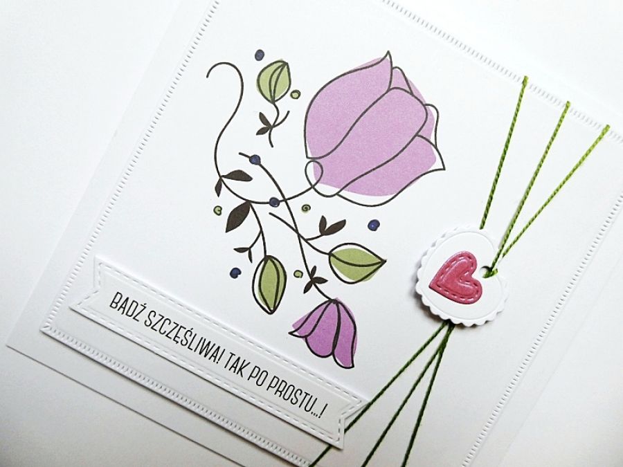 Minimalistyczna ręcznie robiona kartka dla kobiety na urodziny, a także różne inne okazje, jak: imieniny, Dzień Mamy, Dzień Babci, Dzień Kobiet i wiele innych