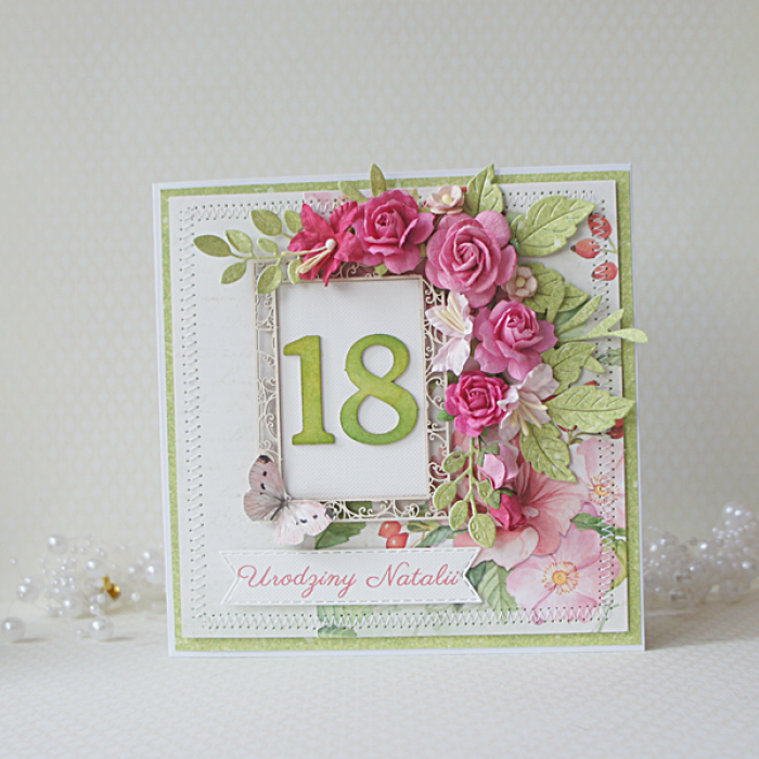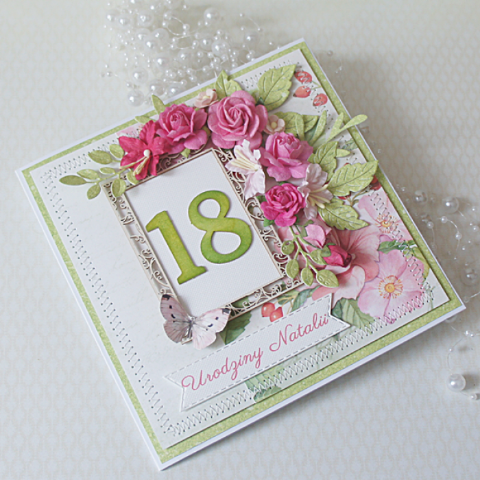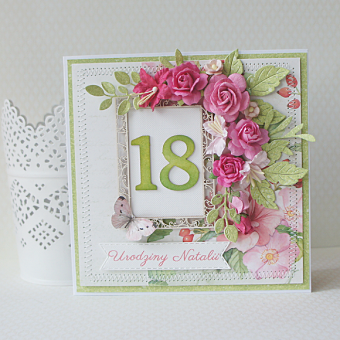 Elegancka i romantyczna kartka w pięknej kolorystyce dla wyjątkowej solenizantki.