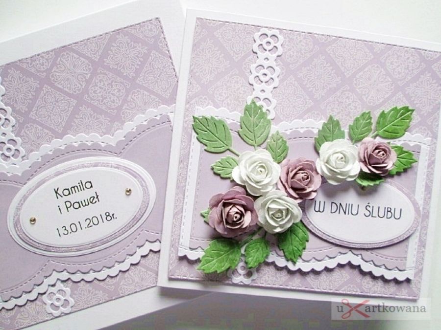 Zadaj pytanie dotyczące produktu: Kartka W DNIU ŚLUBU fioletowo-biała #2
