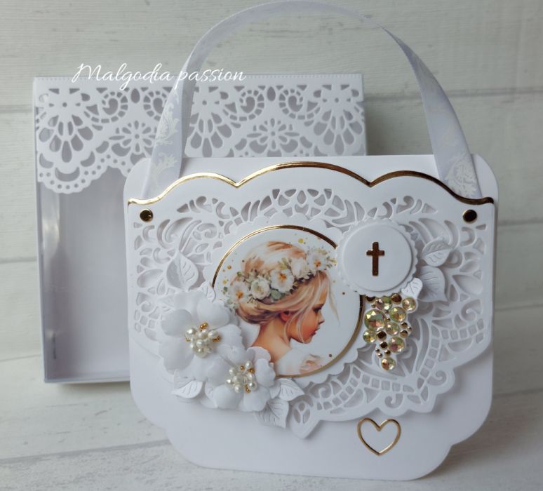 Nazwa produktu: Kartka torebka na Komunię w pudełeczku