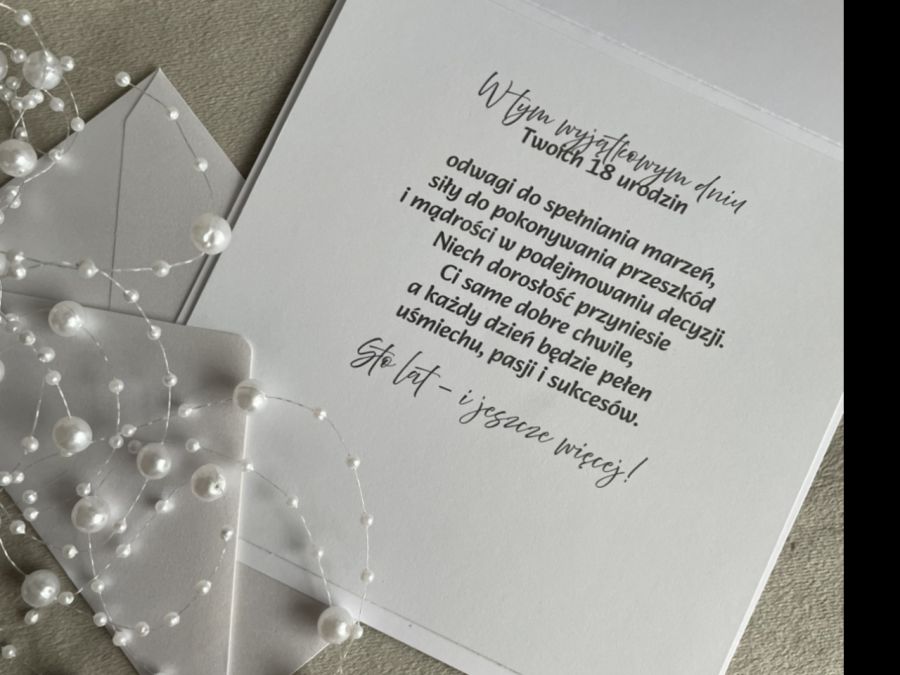 Świętowanie osiemnastki to wyjątkowy moment – symbol wejścia w dorosłość, pełen emocji, radości i nowych możliwości. Kartka w pudełku została zaprojektowana tak, aby już sam jej wygląd zachwycał i podkreślał wyjątkowy charakter tej chwili.