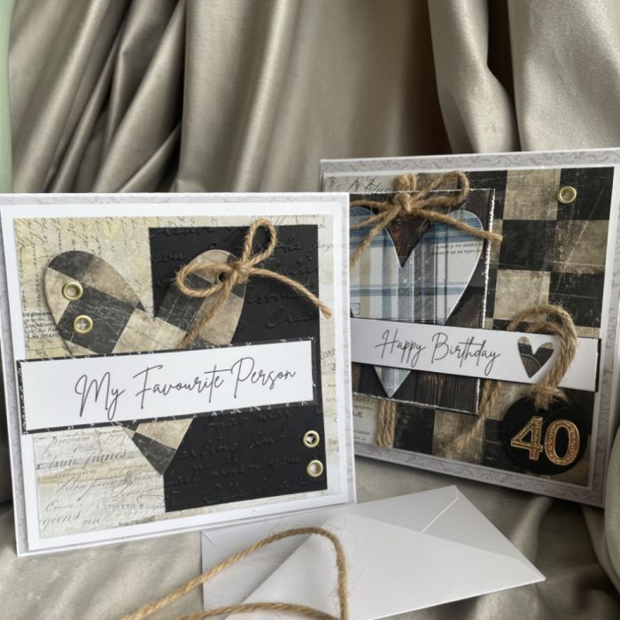 Wyjątkowa kartka urodzinowa wykonana w męskim, eleganckim stylu, ozdobiona subtelnymi sercami, dzięki czemu idealnie sprawdzi się jako prezent dla syna, chłopaka, męża, narzeczonego lub innej bliskiej osoby. Stonowana kolorystyka, minimalistyczne detale i staranne ręczne wykonanie sprawiają, że kartka prezentuje się nowocześnie, stylowo i ponadczasowo — z klasą, ale bez przesadnej słodyczy.