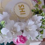 Delikatne, komunijne zdobienia 3D (hostia, kwiaty itp.). Kwiaty wykonane ręcznie.