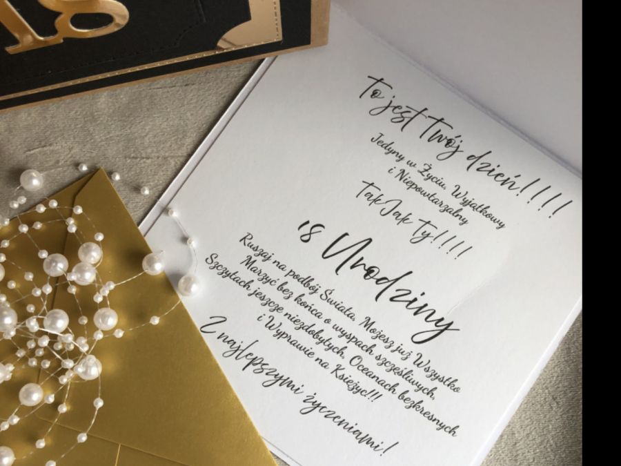Zadaj pytanie dotyczące produktu: Kartka w pudełku z kopertą! 18 lat! Dziewczyna!
