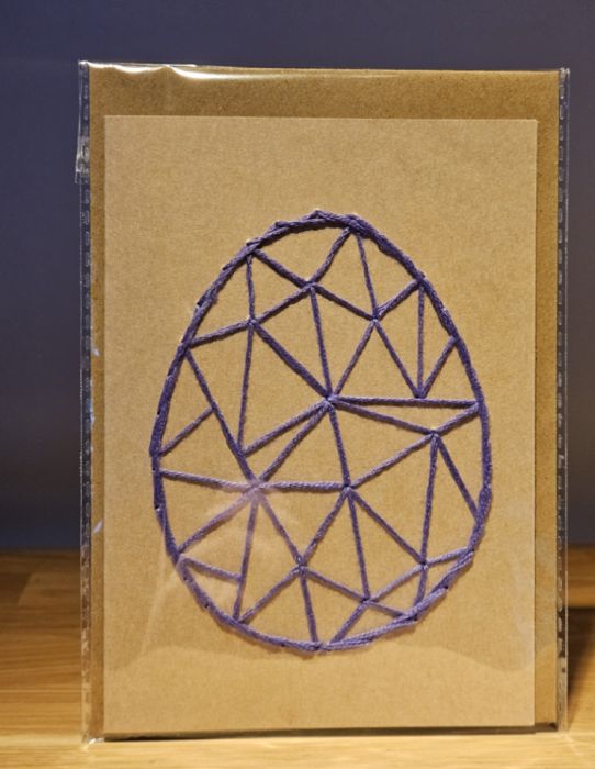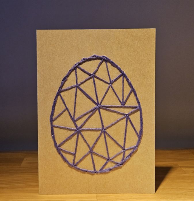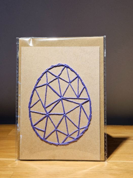 Zadaj pytanie dotyczące produktu: Kartka Wielkanocna - ręcznie haftowana - Pisanka fioletowa