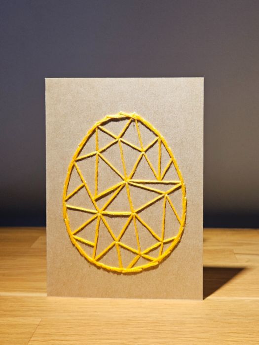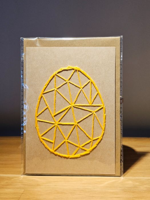Zadaj pytanie dotyczące produktu: Kartka Wielkanocna - ręcznie haftowana - Pisanka żółta