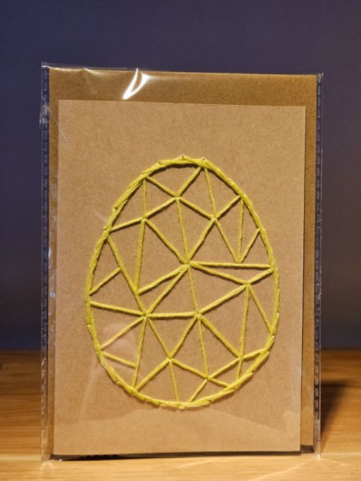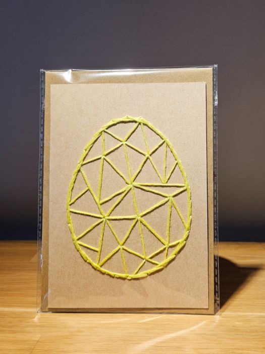 Zadaj pytanie dotyczące produktu: Kartka Wielkanocna - ręcznie haftowana - Pisanka żółto-zielona