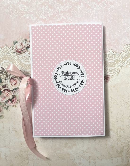 Zamykana poprzez zawiązanie subtelnej kokardki. Ozdobiona papierem ozdobnym z dwóch stron. W środku nie zawiera życzeń.