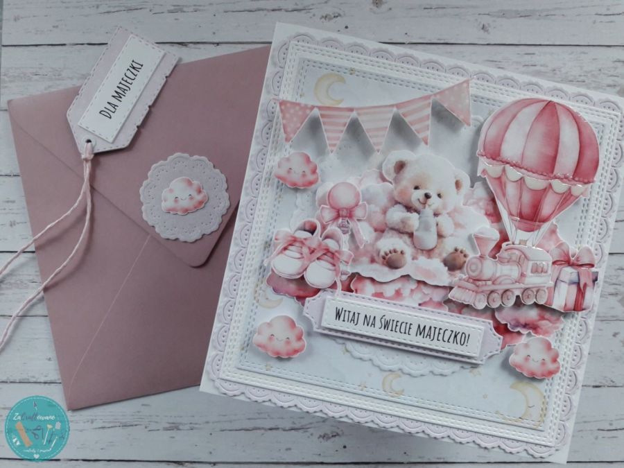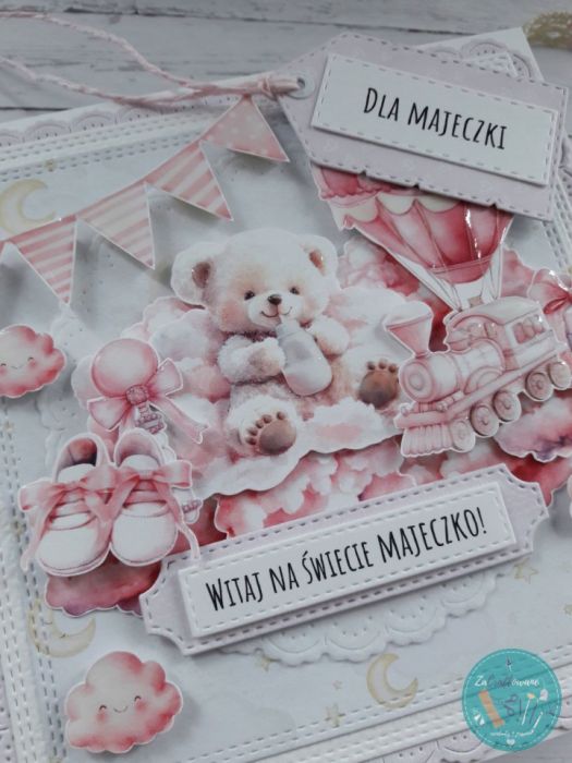 Zadaj pytanie dotyczące produktu: Kartka z okazji narodzin dziewczynki z misiem, personalizacja