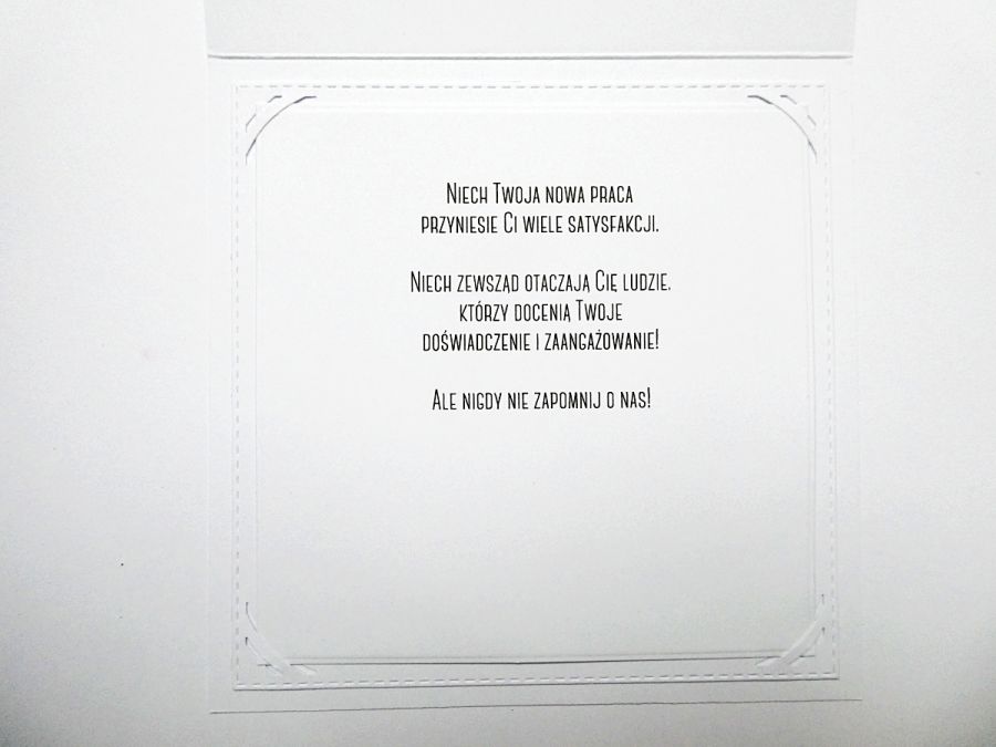 Taka kartka niewątpliwie może dodać skrzydeł osobie zmieniającej pracę, ale jednocześnie może stanowić wspaniałą formę podziękowania od dotychczasowych współpracowników.