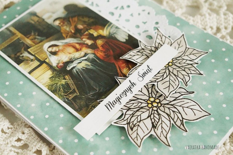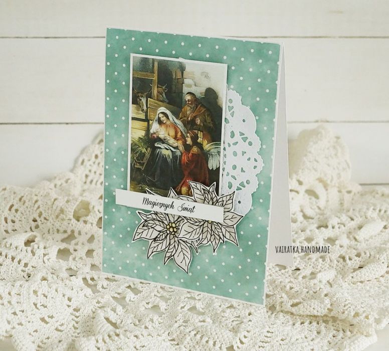 Klasyczna kartka świąteczna z religijnym motywem.