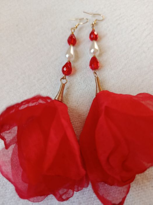 Zadaj pytanie dotyczące produktu: Klasyczne, czerwone, szyfonowe kolczyki