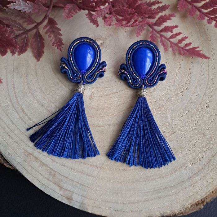 Kolczyki delikatne i lekkie w kolorze kobaltowo-granatowy z granatowym chwostem.