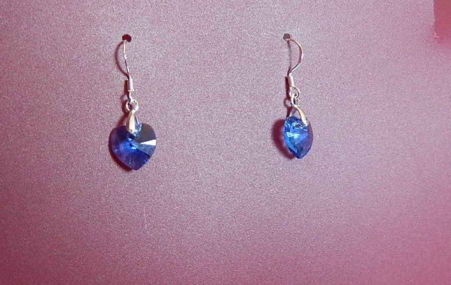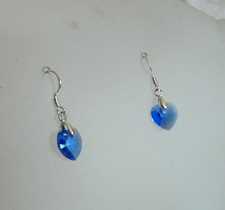 Kobaltowe, fasetowane kryształki mają kształt malutkich serduszek. Zawieszone zostały na otwartych, srebrnych biglach pr 925.