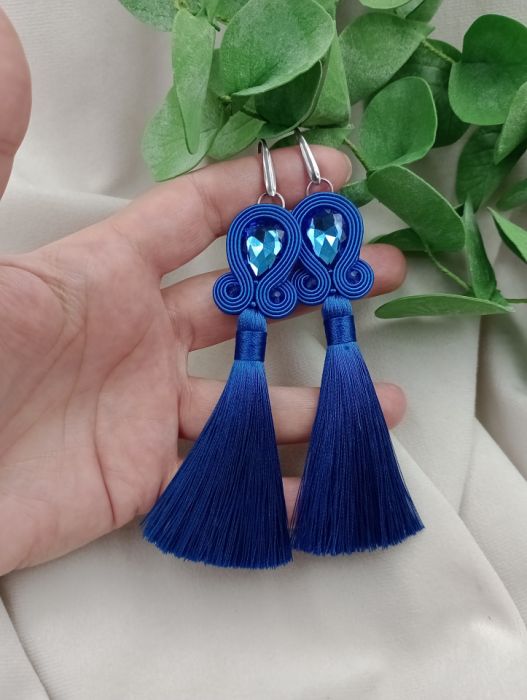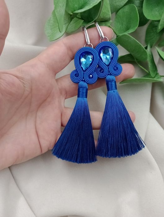 Kolczyki soutache. Kobaltowe niebieskie kolczyki z chwostami.