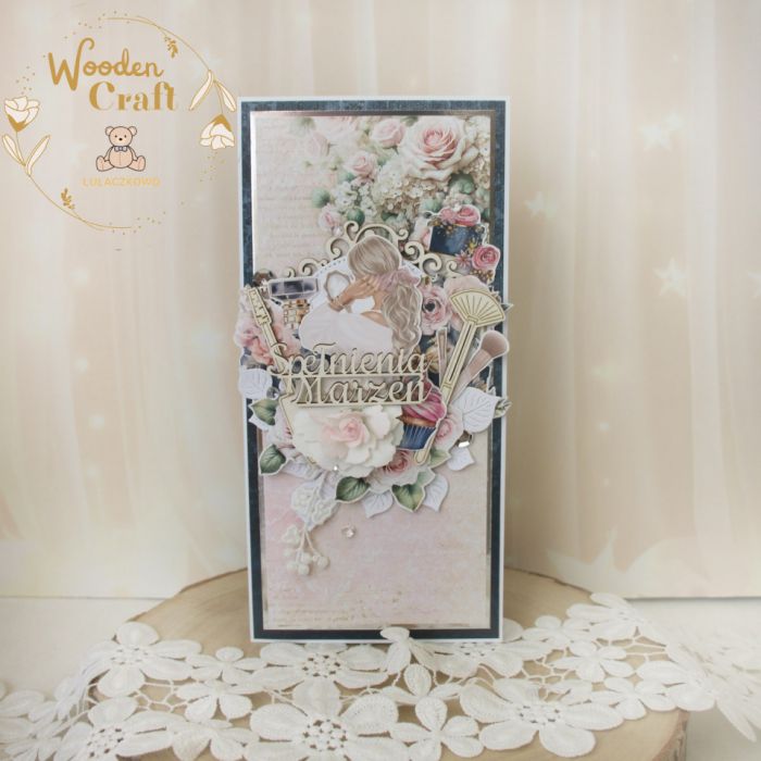 Do kartki dołączone jest białe pudełeczko z okienkiem.
