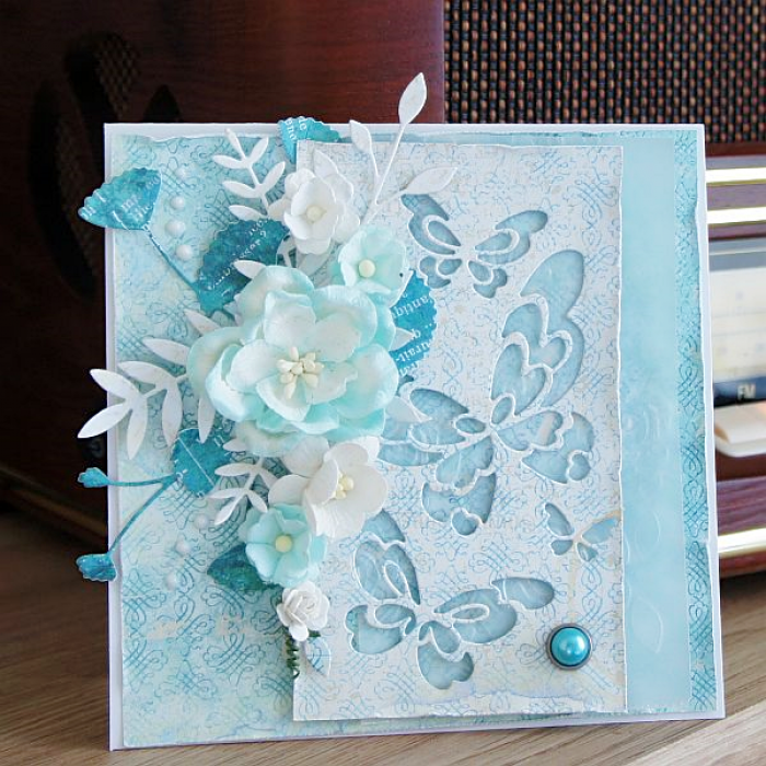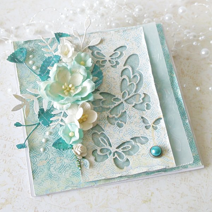 Delikatna, romantyczna kartka dla wyjątkowej kobiety w kolorach turkusu.