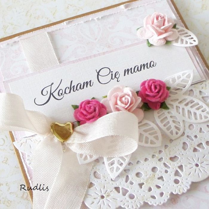 Delikatna i romantyczna kartka dla mamy. Wykonana z wykorzystaniem profesjonalnych materiałów.