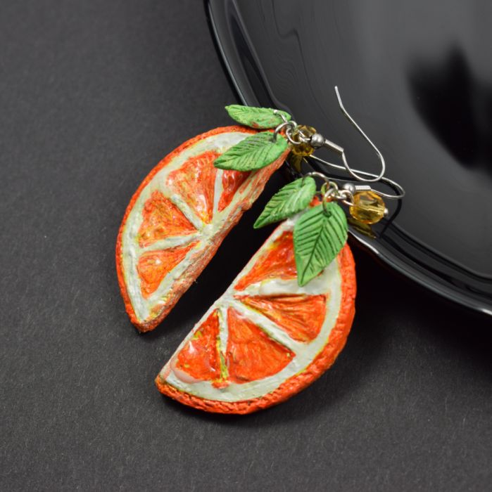 Przyciągają spojrzenia i wywołują uśmiech - te kolczyki to prawdziwa eksplozja letniej energii! Ręcznie wykonane z lekkiej glinki polimerowej, do złudzenia przypominają plasterki świeżej, soczystej pomarańczy. Pokryte błyszczącą warstwą żywicy sprawiają wrażenie mokrych i apetycznych, jakby dopiero co zostały wyciśnięte prosto z owocu!