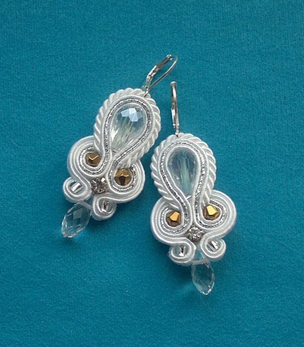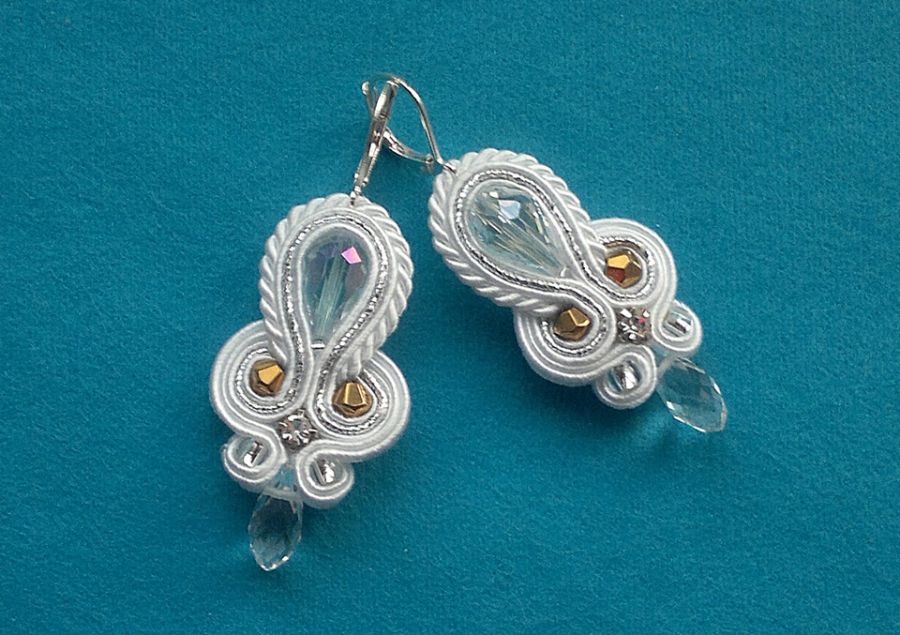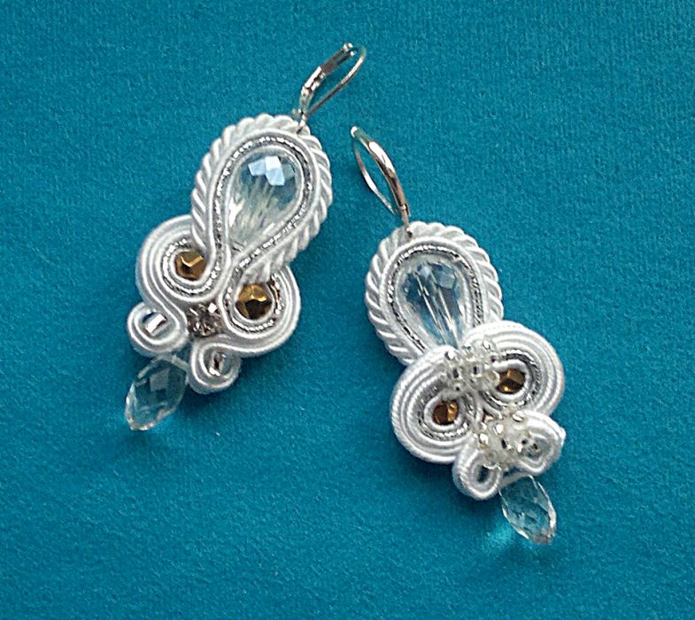Piękne, lśniące, srebrzysty, krysztaliczny i efektowne z dodatkiem złota al'a vintage kolczyki zostay wykonane ręcznie pracochłonną techniką haftu sutasz. Robią wielkie wrażenie!!!