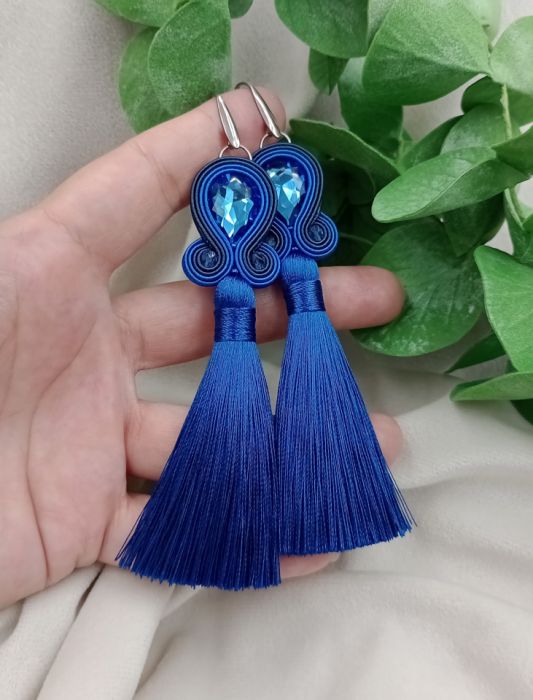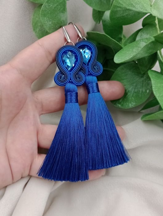 Nazwa produktu: Kolczyki boho chwosty frędzle niebieskie long