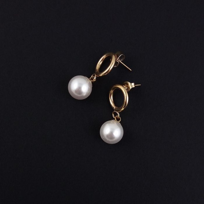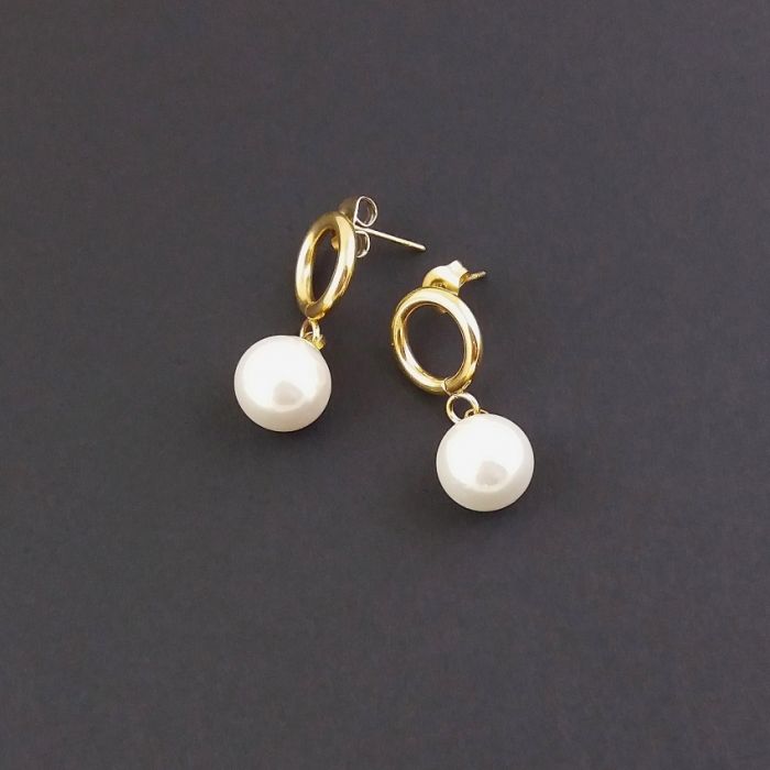 Na wygodnych, okrągłych sztyftach zawieszone są duże, białe perły seashell (z muszli perłopławów).