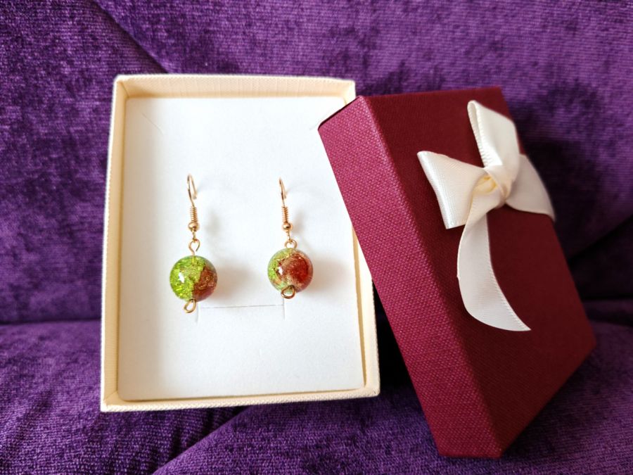 Kolczyki zapakowane są w ozdobne pudełko (może się różnić od prezentowanego na zdjęciu).