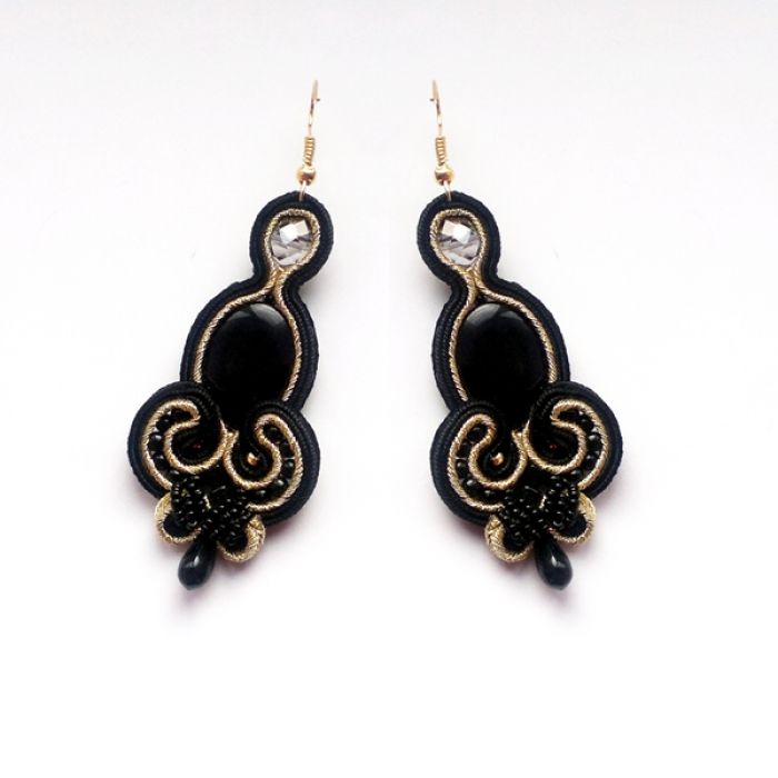 Piękne i efektowne kolczyki zostały wykonane ręcznie techniką haftu sutasz.