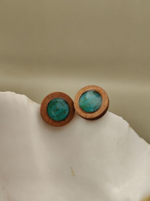 Wyjątkowe kolczyki wykonane z naturalnego drewna, które zachwycają ciepłym odcieniem i lekką formą. Centralnym elementem jest turkusowa wstawka z delikatnym, subtelnym motywem, nadająca całości artystycznego i niepowtarzalnego charakteru. To biżuteria stworzona dla osób ceniących naturę, rękodzieło i oryginalne dodatki, które podkreślają styl bez nadmiernej ekstrawagancji. Doskonale sprawdzą się zarówno na co dzień, jak i jako akcent uzupełniający bardziej elegancką stylizację.